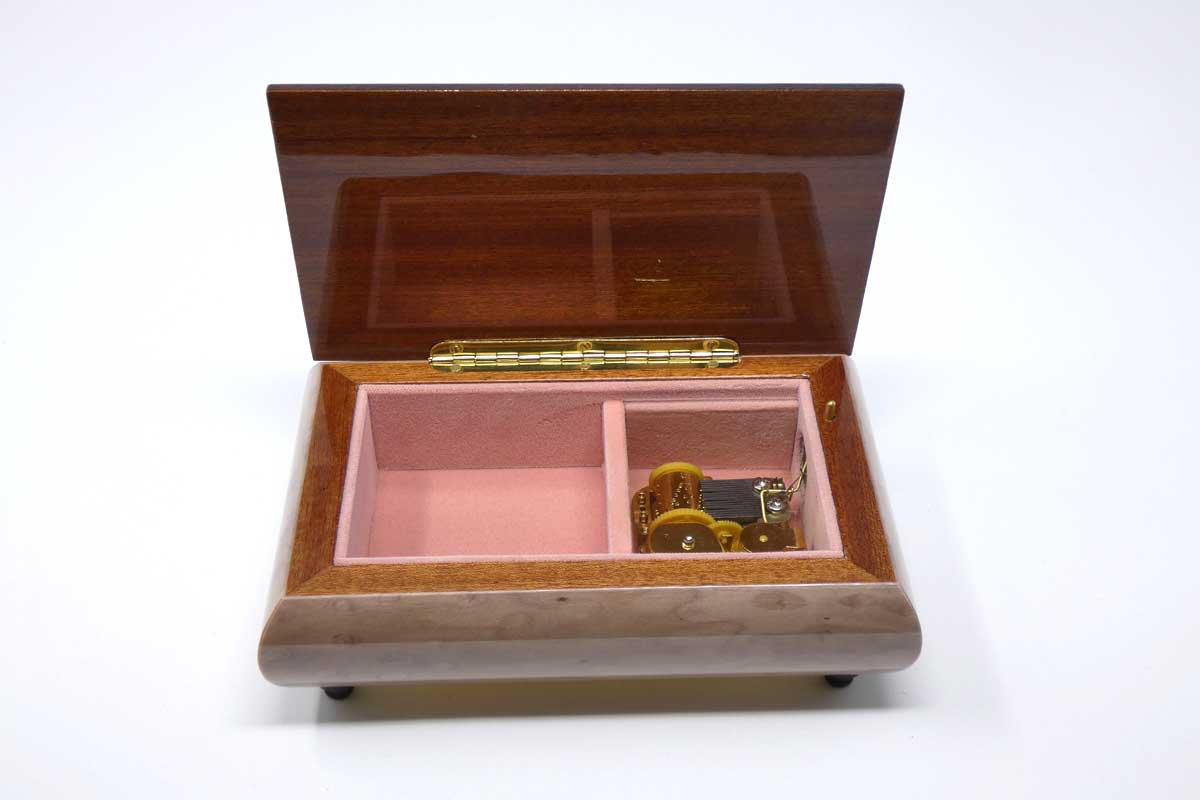 Cofanetto musicale, in stile barocco, realizzato interamente a mano dagli artigiani della tarsia lignea sorrentina.