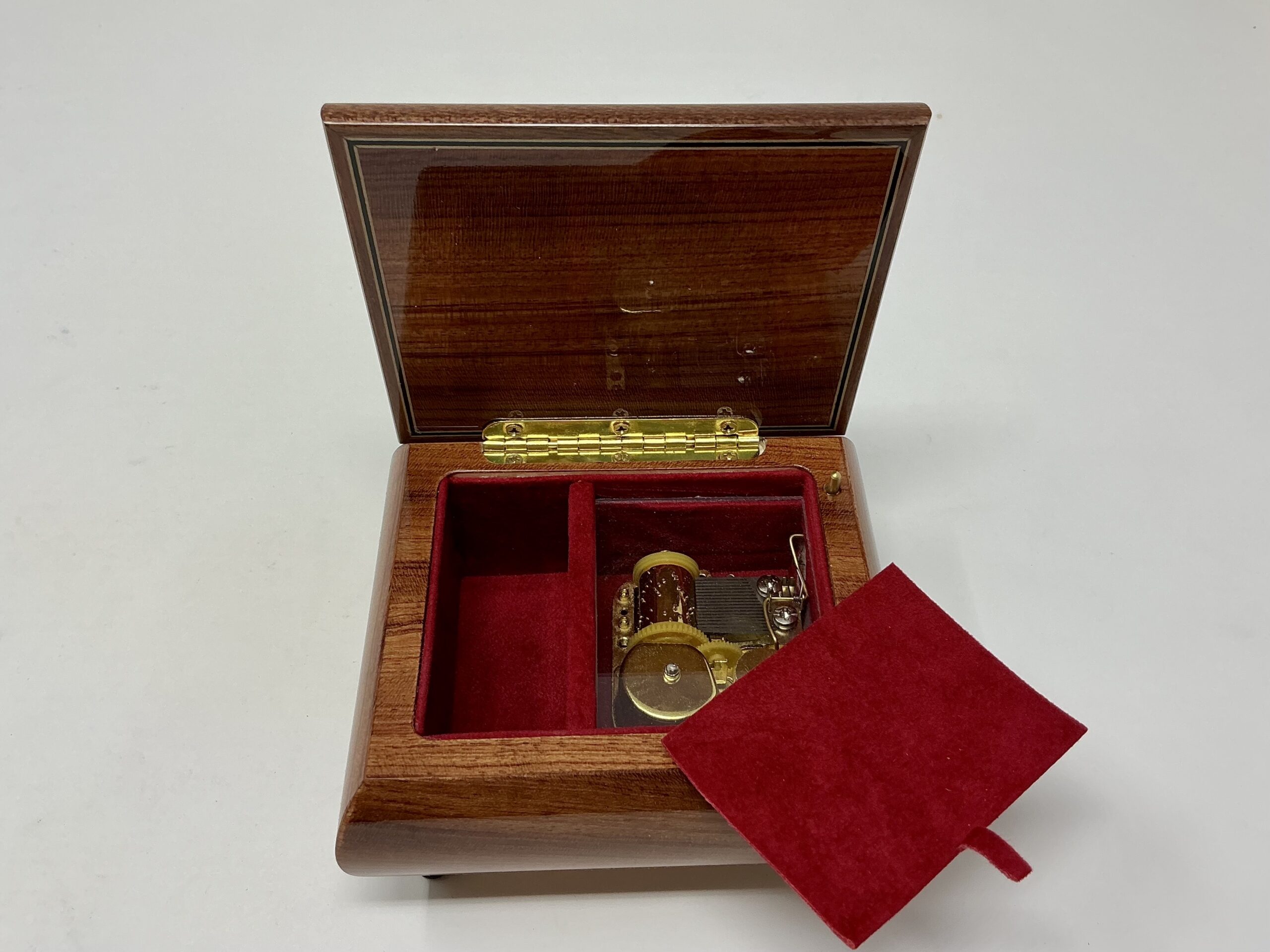 Questo portagioie è stato realizzato a mano con piccoli tasselli di legni differenti e selezionati.