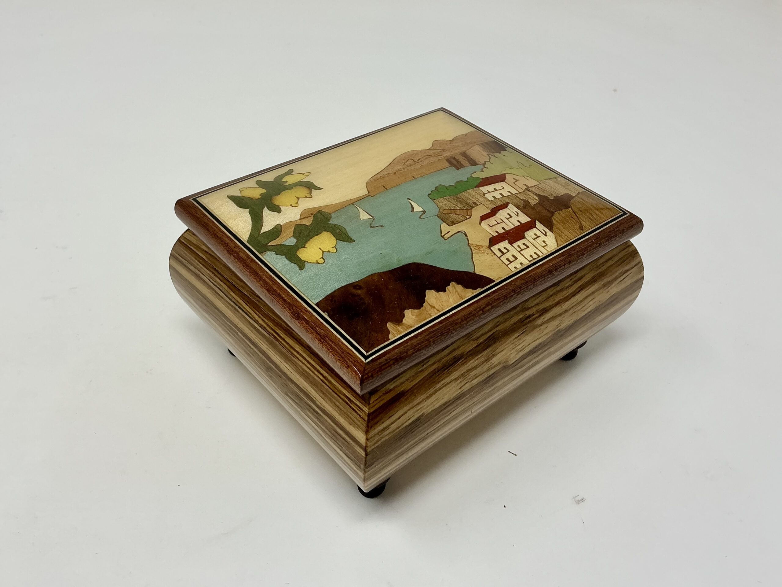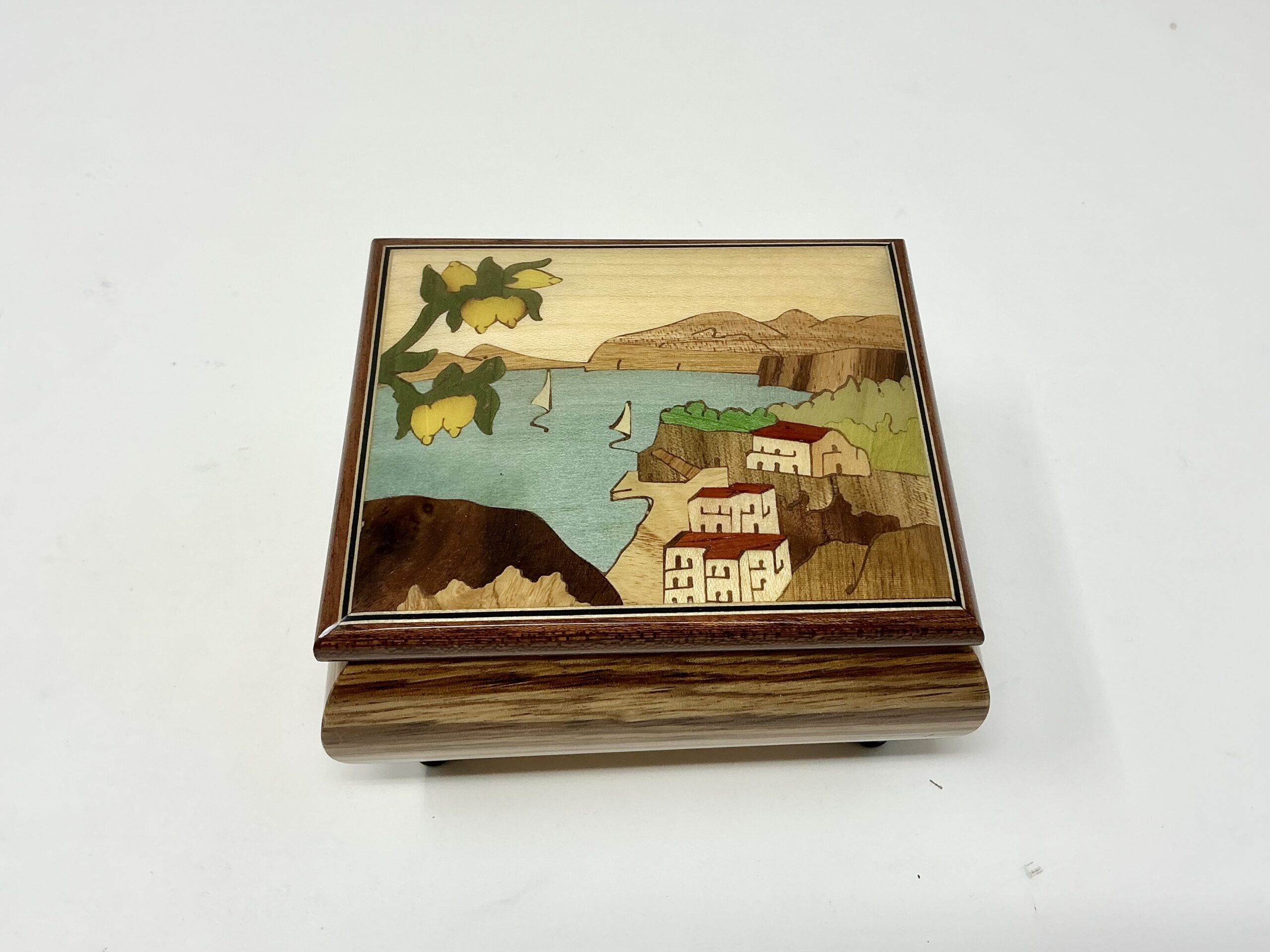 Questo portagioie è stato realizzato dagli artigiani Augusto e suo figlio Luca a Sorrento.