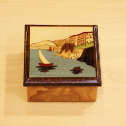 Cofanetto portagioie intarsiato con vela e panorama di Sorrento